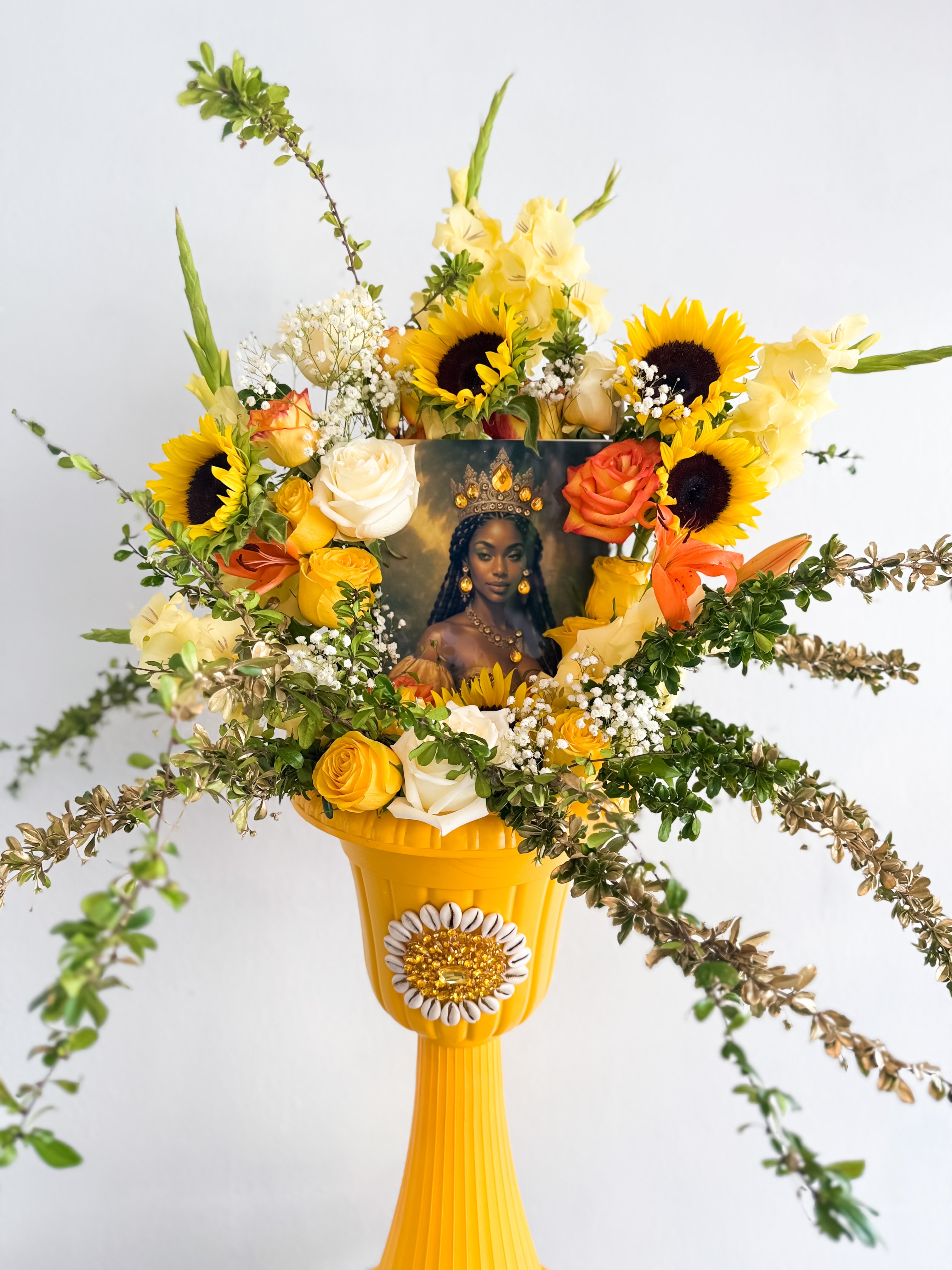 Artistico arreglo Floral con Imagen Personalizada de Orisha en Metal